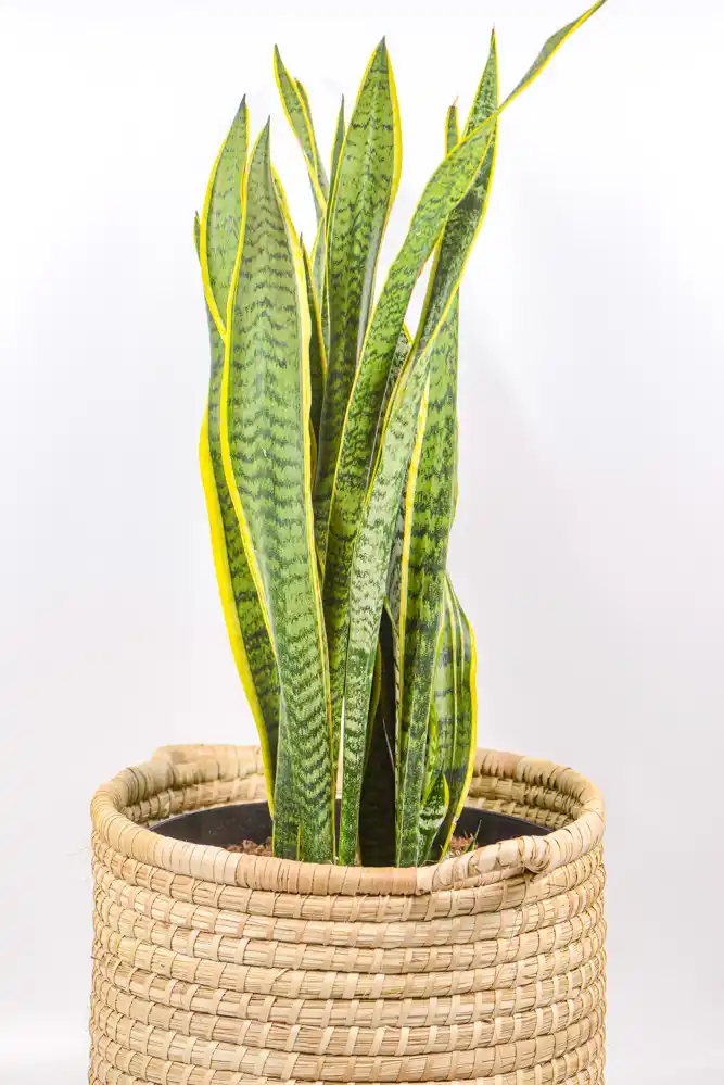 Snake plant Laurentii in a handwoven basket